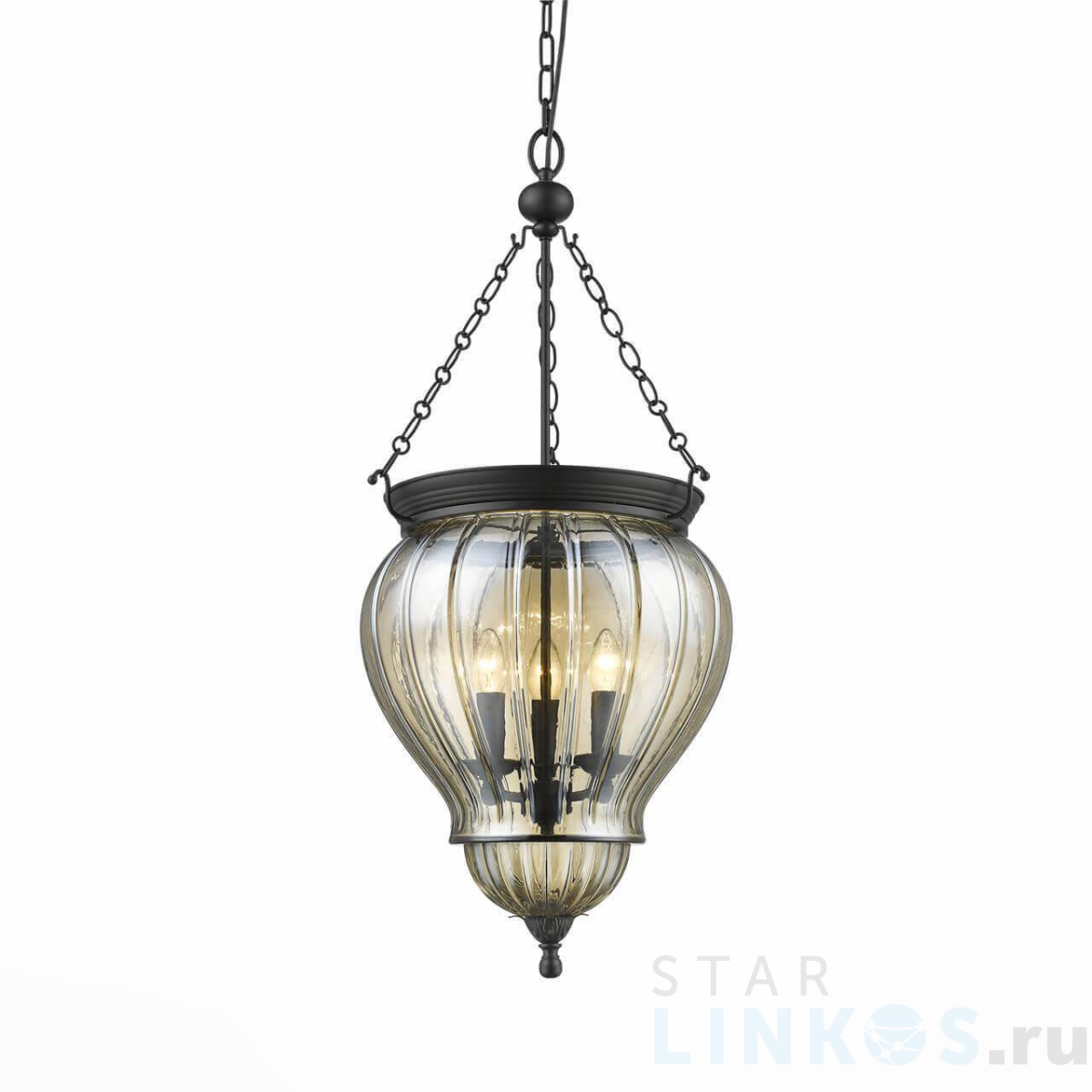 Поставщик рекомендует использовать лампы накаливания с цоколем E14 для освещения площади 10 м2. Подвесная люстра ST Luce Sotto SL317.433.03 в замковом стиле используется в интерьере кухни с установкой на потолок.