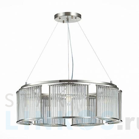 Поставщик рекомендует использовать лампы накаливания с цоколем E14 для освещения площади 14 м2. Подвесная люстра ST Luce Velletri SL1627.103.07 в используется в интерьере гостиной с установкой на потолок.