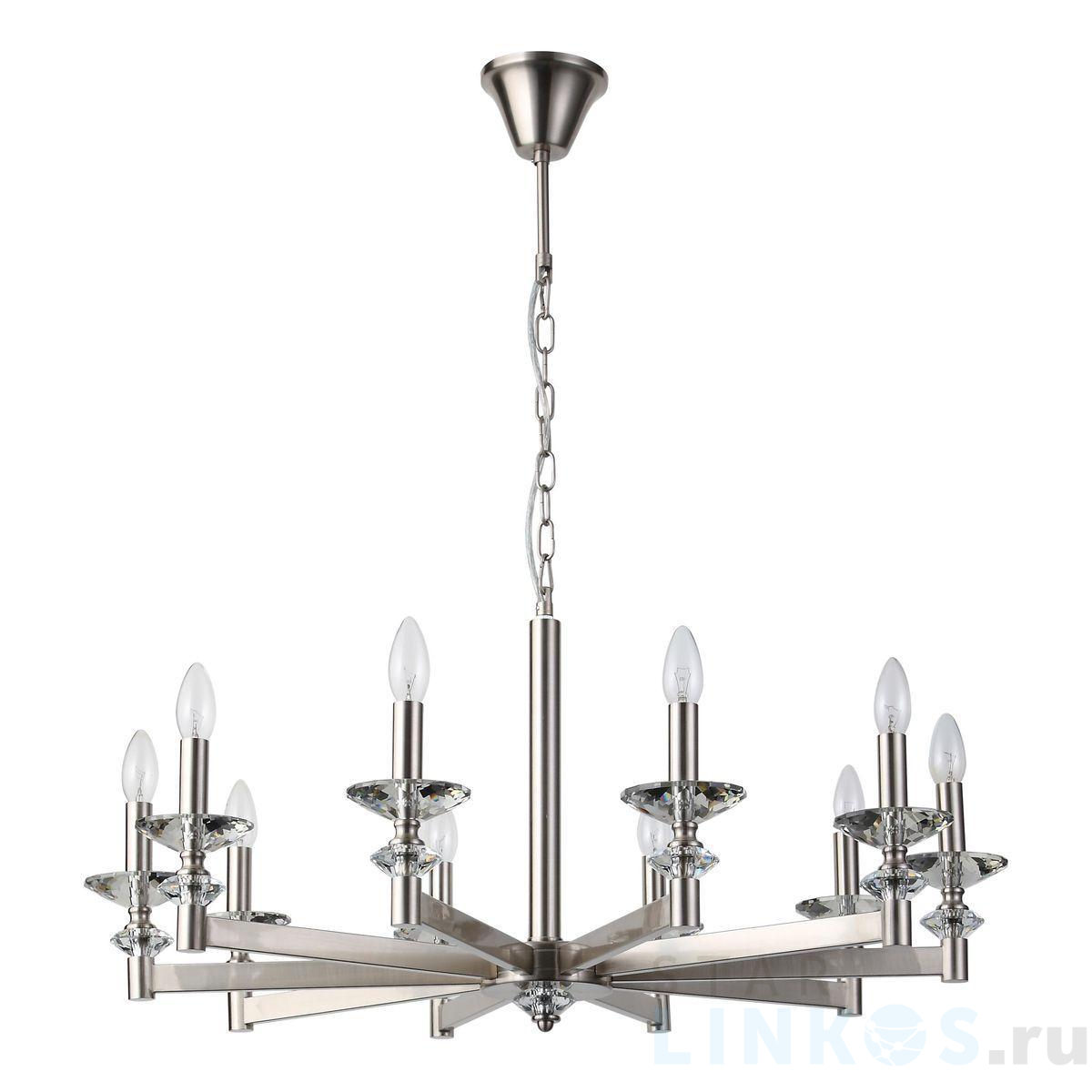 Поставщик рекомендует использовать лампы накаливания с цоколем E14. Подвесная люстра Stilfort Albert 1048/11/10P в используется в интерьере гостиной с установкой на потолок.