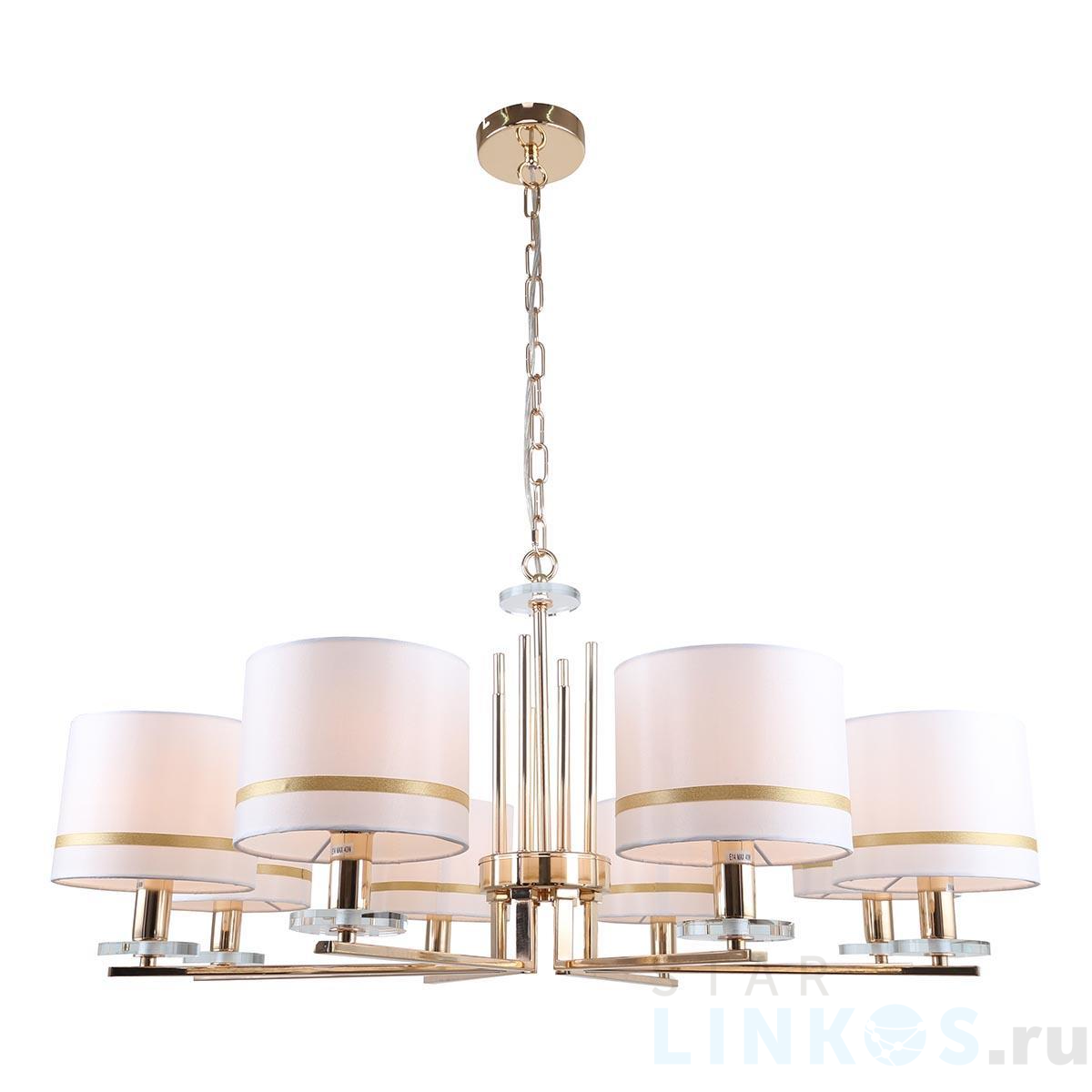Поставщик рекомендует использовать лампы накаливания с цоколем E14 для освещения площади 17,8 м2. Подвесная люстра Stilfort Chart 1045/03/08P в используется в интерьере гостиной с установкой на потолок.