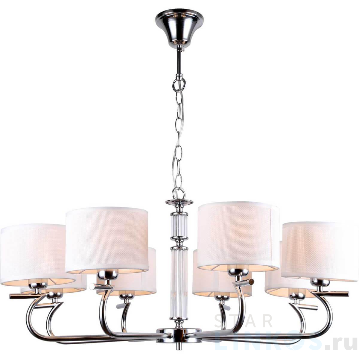 Поставщик рекомендует использовать лампы накаливания с цоколем E14 для освещения площади 17,8 м2. Подвесная люстра Stilfort Ellada 2012/09/08P в используется в интерьере гостиной с установкой на потолок.