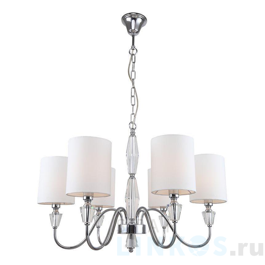 Поставщик рекомендует использовать лампы накаливания с цоколем E14. Подвесная люстра Stilfort Estetio 1051/09/06P в используется в интерьере спальни с установкой на потолок.