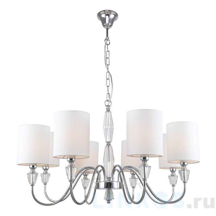 Поставщик рекомендует использовать лампы накаливания с цоколем E14. Подвесная люстра Stilfort Estetio 1051/09/08P в используется в интерьере гостиной с установкой на потолок.