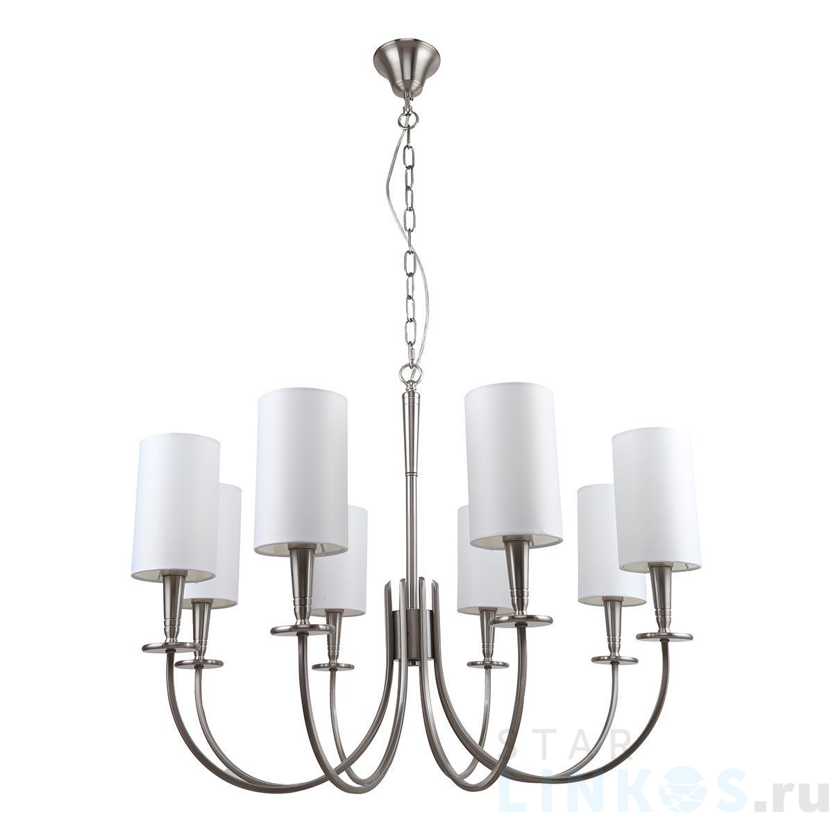 Поставщик рекомендует использовать лампы накаливания с цоколем E14 для освещения площади 17,8 м2. Подвесная люстра Stilfort Flokky 1044/11/08P в используется в интерьере гостиной с установкой на потолок.