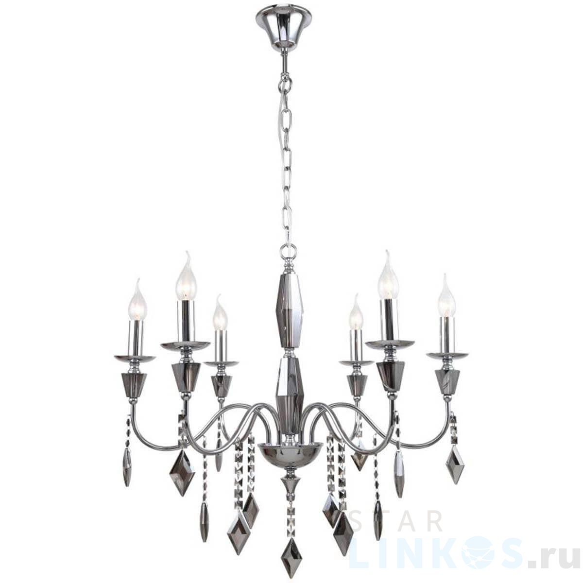 Поставщик рекомендует использовать лампы накаливания с цоколем E14. Подвесная люстра Stilfort Grace 1053/09/06P в используется в интерьере гостиной с установкой на потолок.