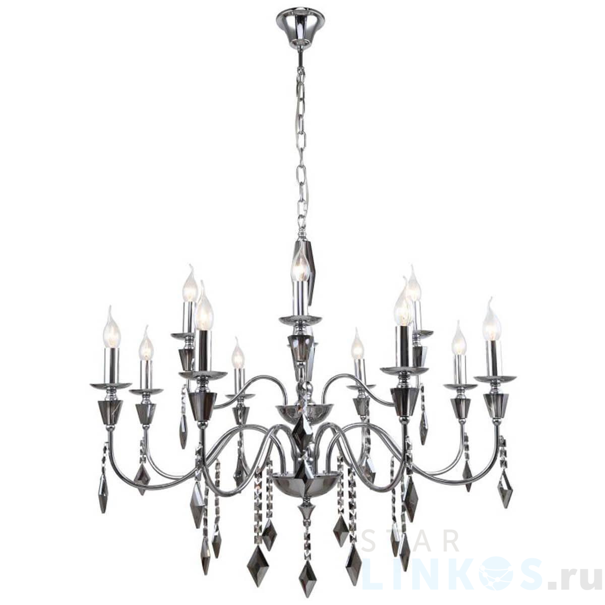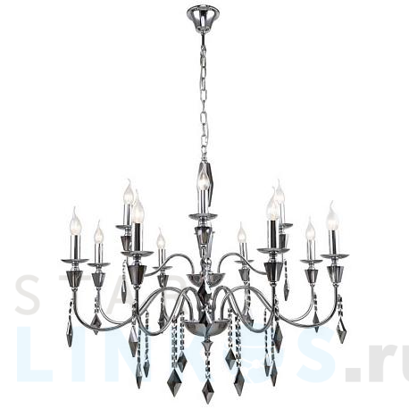 Поставщик рекомендует использовать лампы накаливания с цоколем E14. Подвесная люстра Stilfort Grace 1053/09/12P в используется в интерьере гостиной с установкой на потолок.
