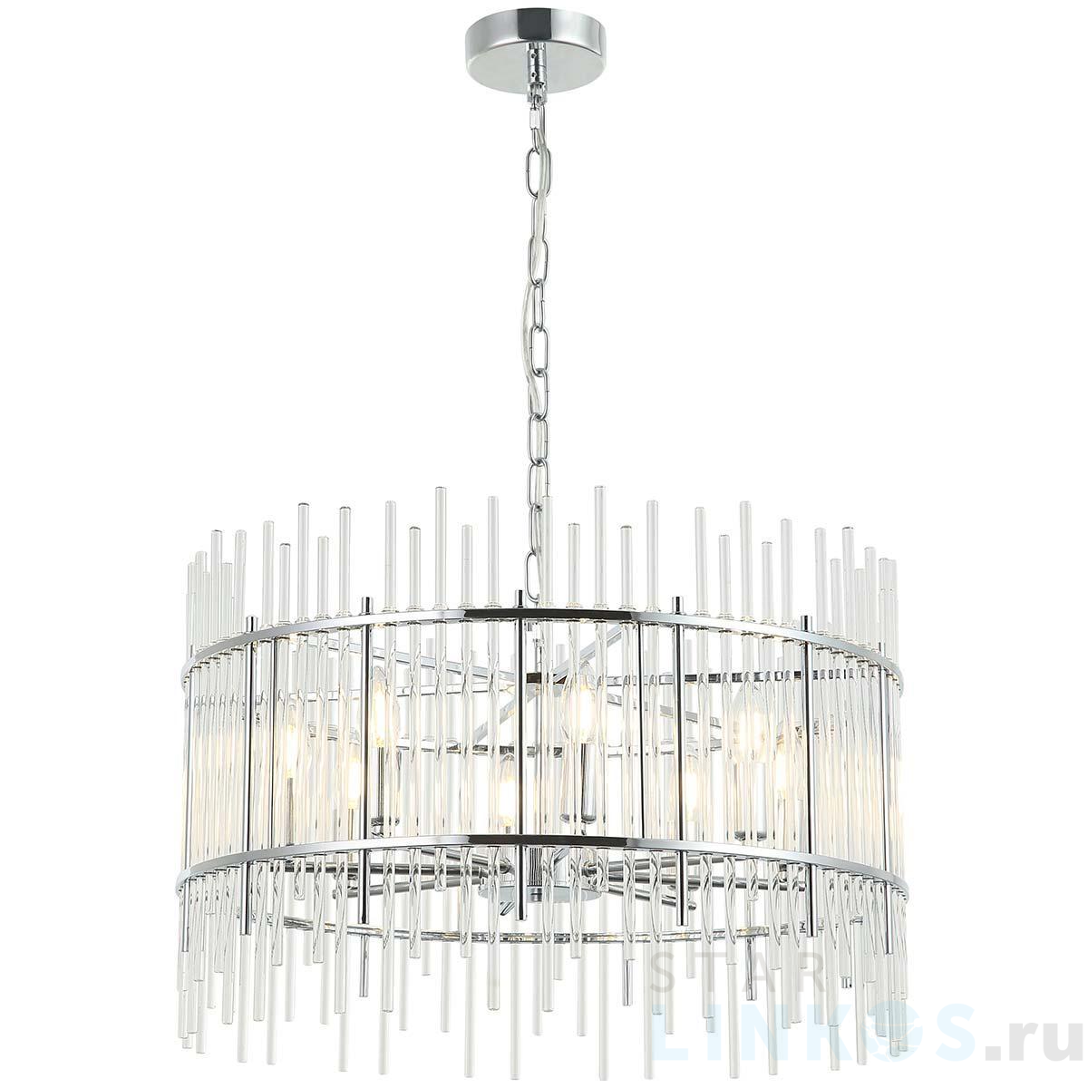 Поставщик рекомендует использовать лампы накаливания с цоколем E14. Подвесная люстра Stilfort Sia 2146/09/08P в используется в интерьере гостиной с установкой на потолок.