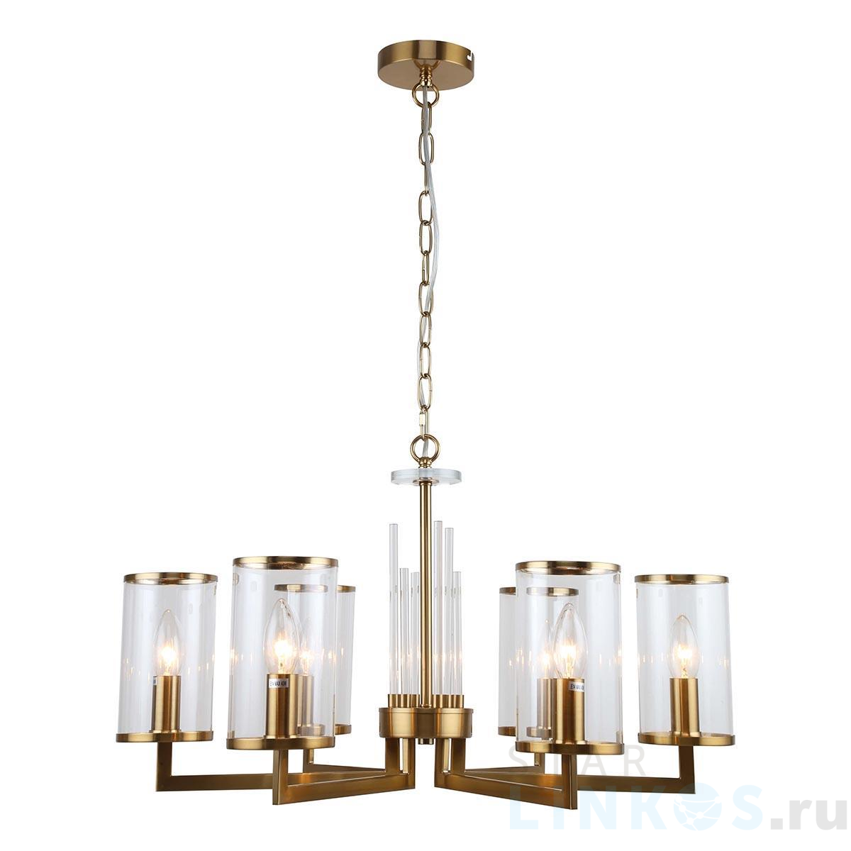 Поставщик рекомендует использовать лампы накаливания с цоколем E14 для освещения площади 13,3 м2. Подвесная люстра Stilfort Vase 1046/05/06P в используется в интерьере спальни с установкой на потолок.