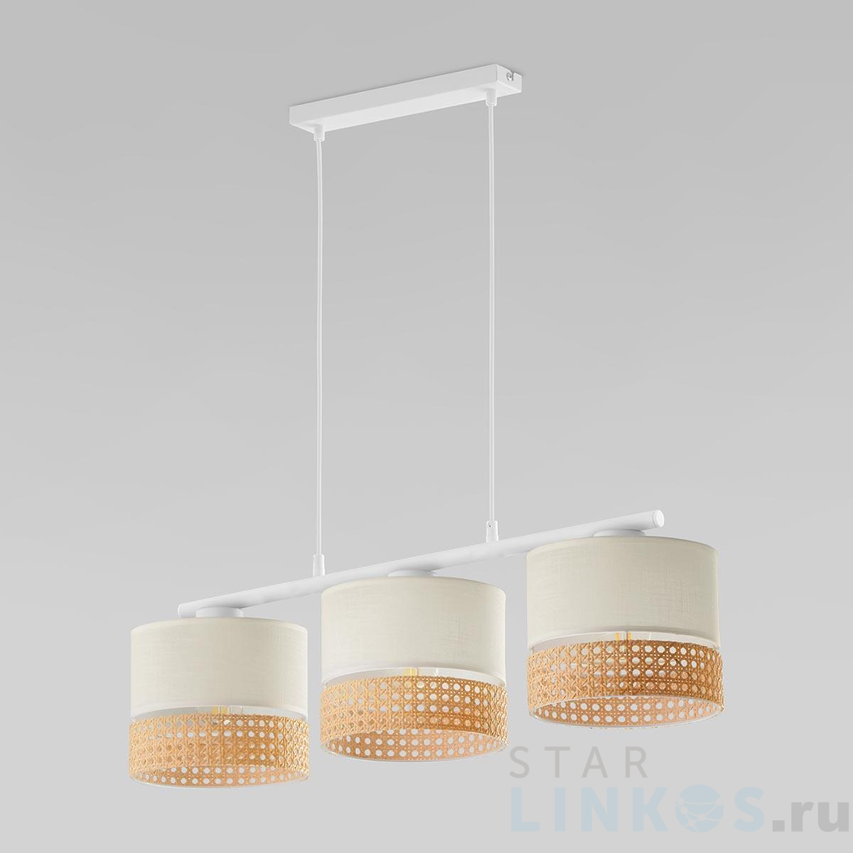 Поставщик рекомендует использовать лампы накаливания с цоколем E27 для освещения площади 6 м2. Подвесная люстра TK Lighting 6694 Paglia в стиле прованс используется в интерьере кухни с установкой на потолок.