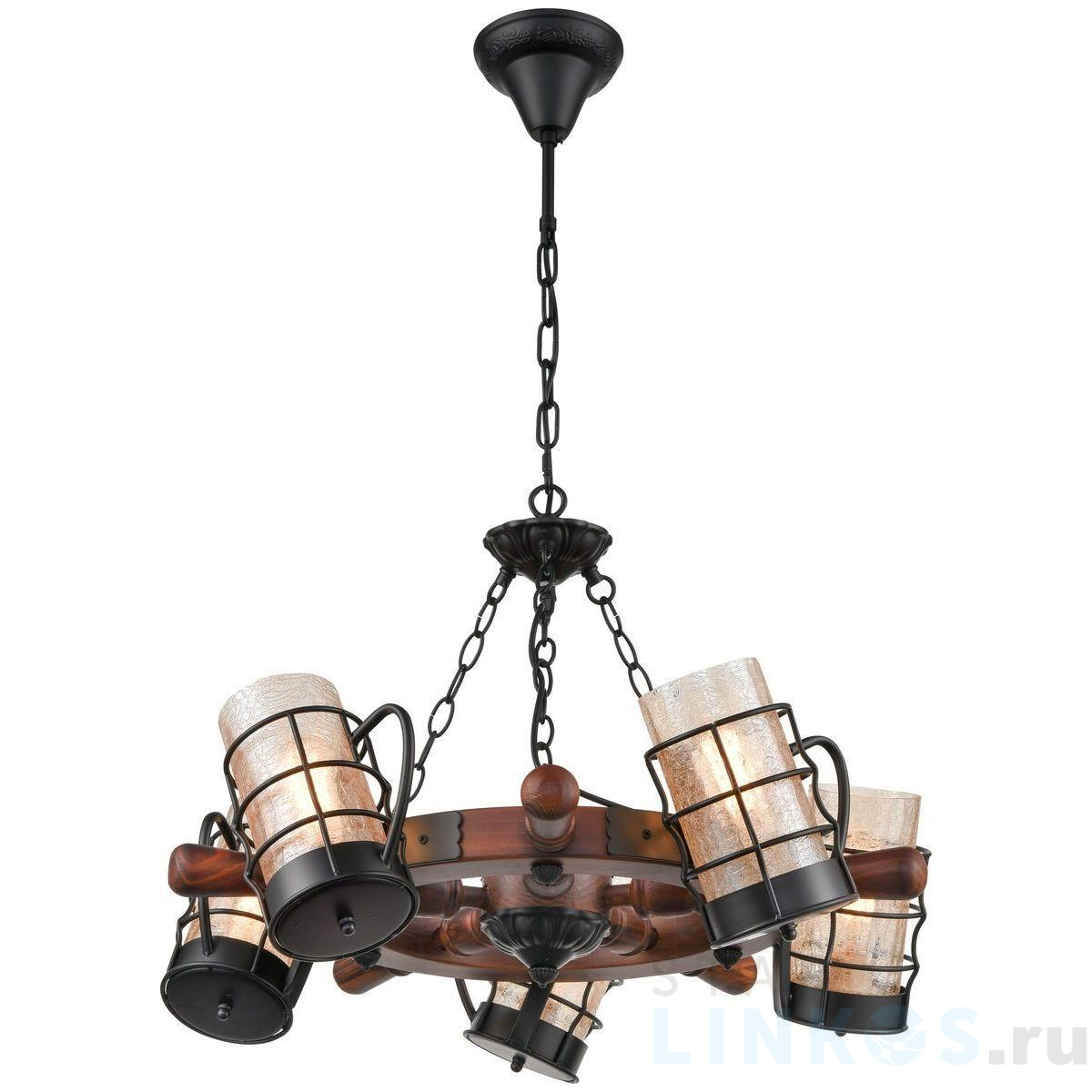 Поставщик рекомендует использовать лампы накаливания с цоколем E27 для освещения площади 11,1 м2. Подвесная люстра Velante 561-703-05 в кантри-стиле используется в интерьере кафе и ресторанов с установкой на потолок.