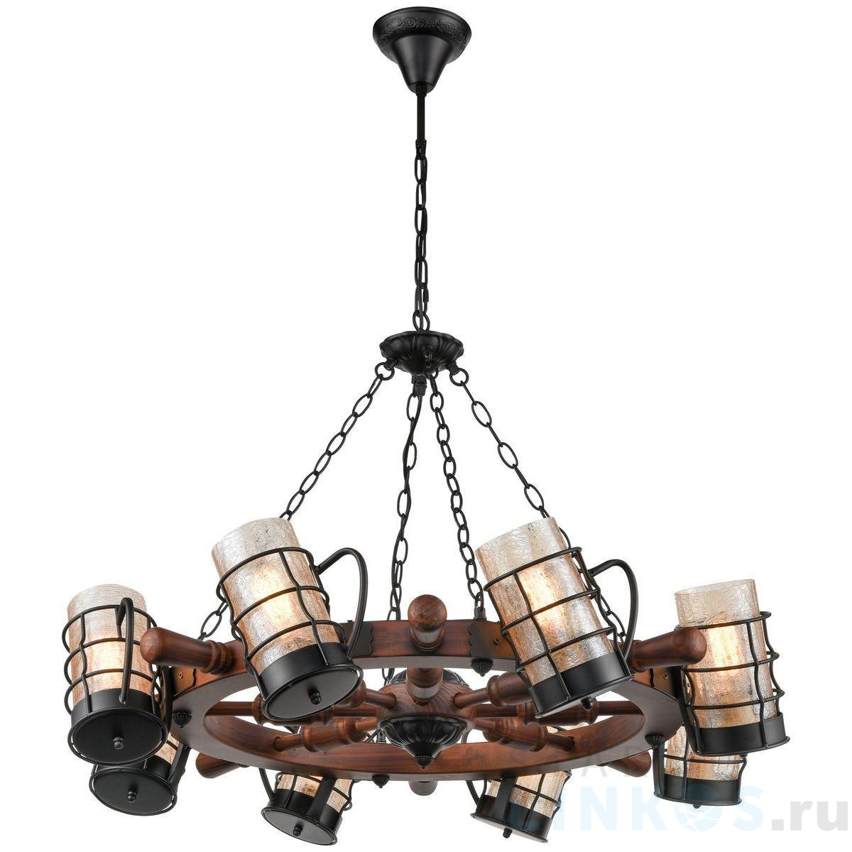 Поставщик рекомендует использовать лампы накаливания с цоколем E27 для освещения площади 17,8 м2. Подвесная люстра Velante 561-703-08 в кантри-стиле используется в интерьере кафе и ресторанов с установкой на потолок.