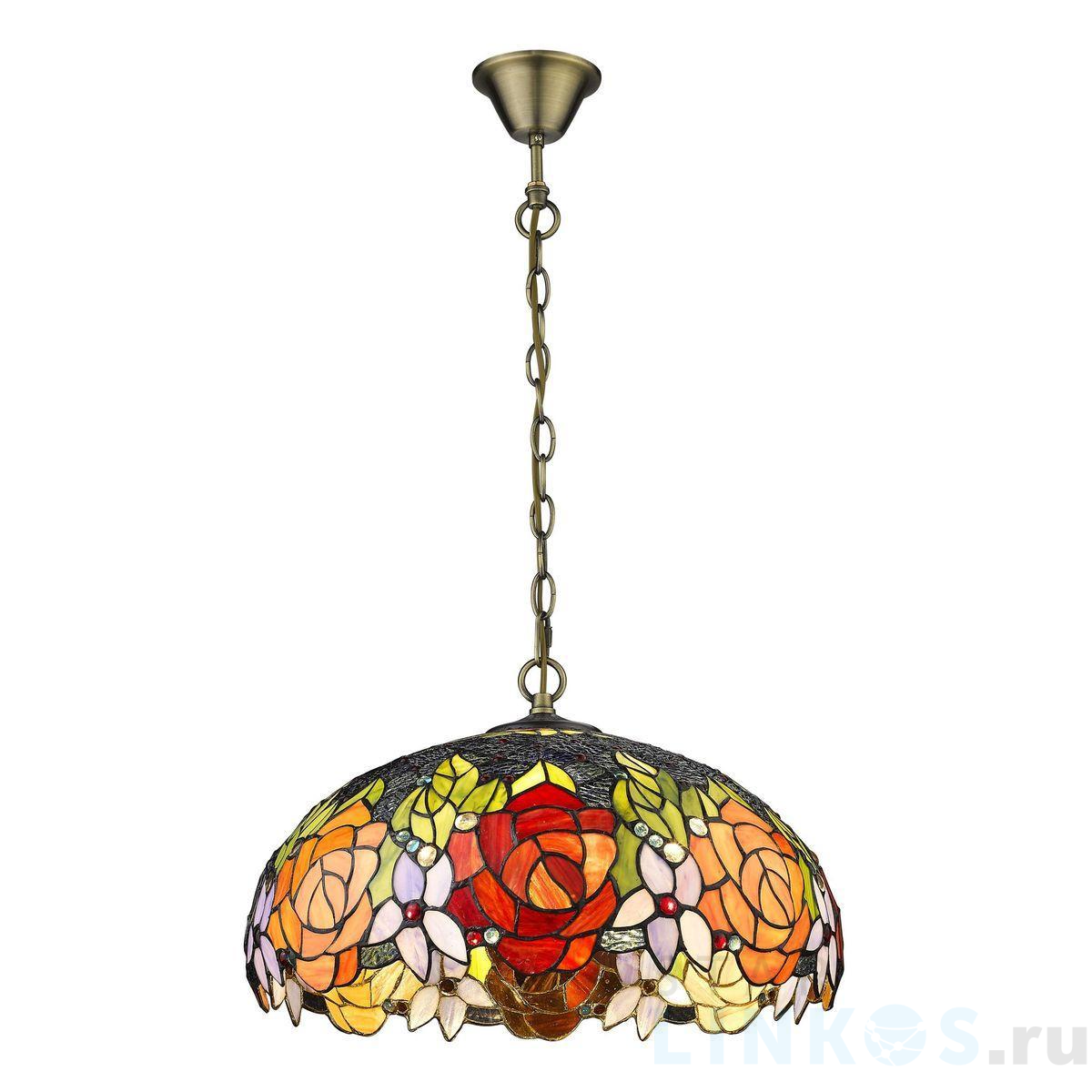 Поставщик рекомендует использовать лампы накаливания с цоколем E27 для освещения площади 9 м2. Подвесная люстра Velante 828-806-03 в стиле Тиффани используется в интерьере кухни с установкой на потолок.