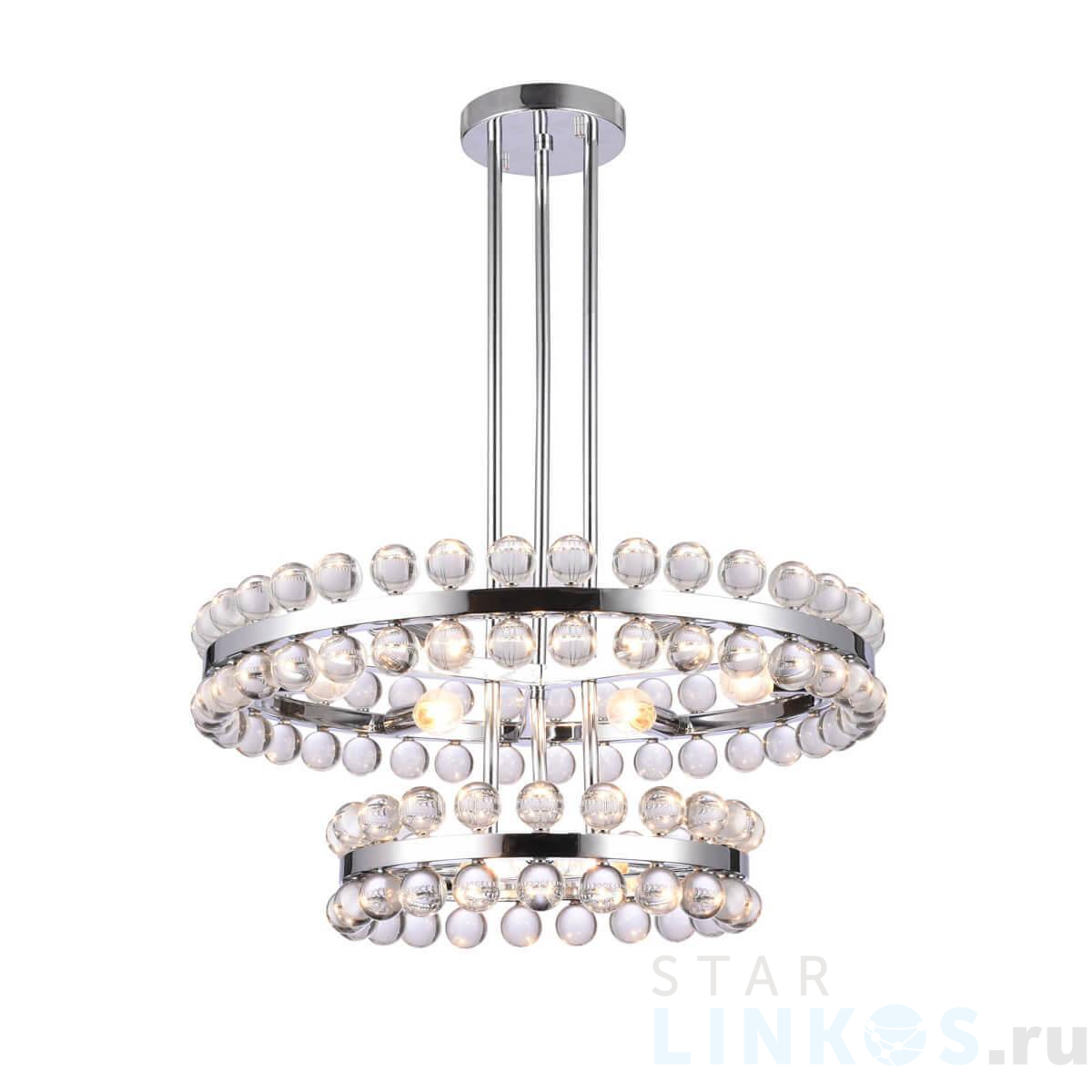 Поставщик рекомендует использовать лампы накаливания с цоколем E14 для освещения площади 14 м2. Подвесная люстра Vele Luce Baldassare VL4143L09 в используется в интерьере гостиной с установкой на потолок.