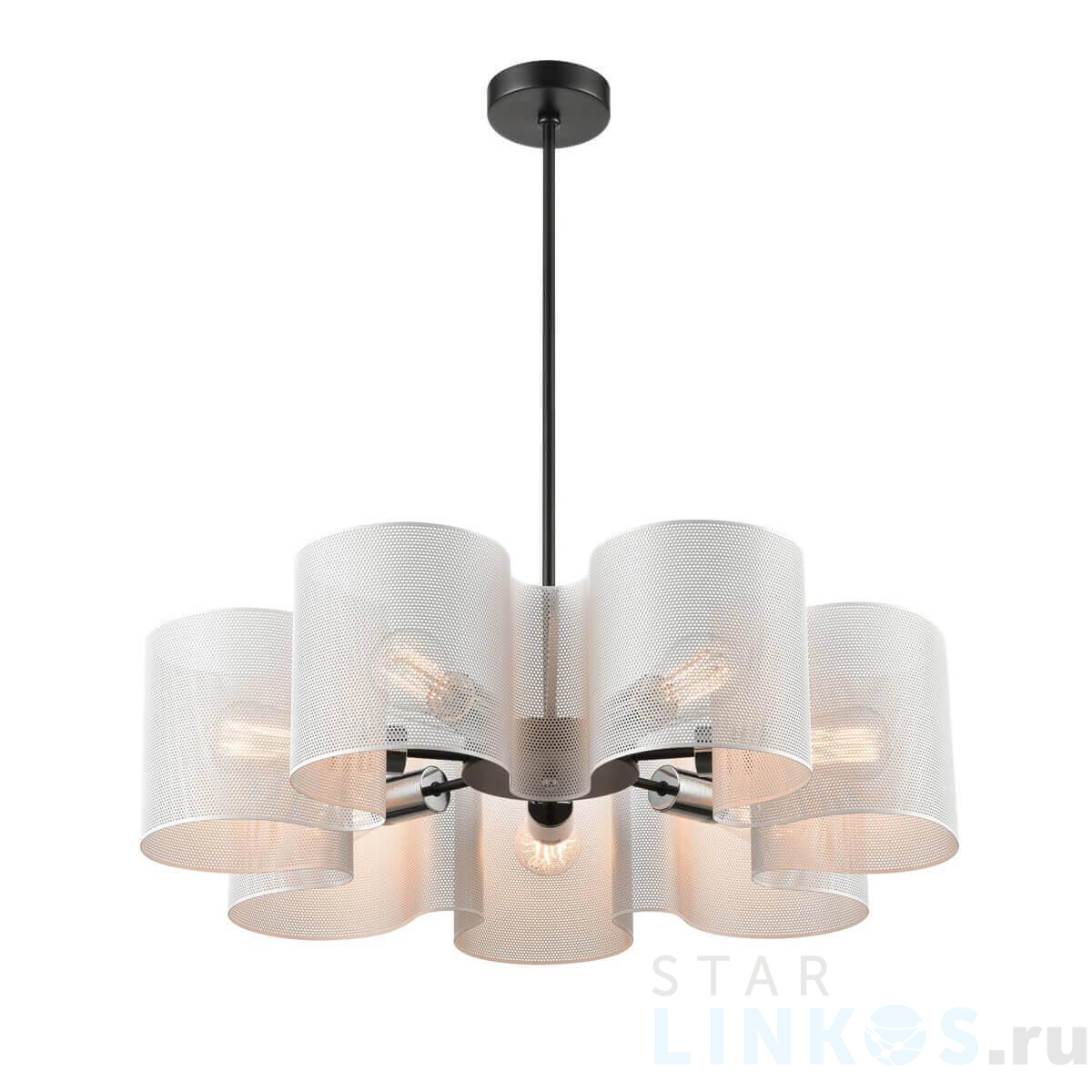 Поставщик рекомендует использовать лампы накаливания с цоколем E27 для освещения площади 16 м2. Подвесная люстра Vele Luce Cross VL5272P07 в используется в интерьере гостиной с установкой на потолок.
