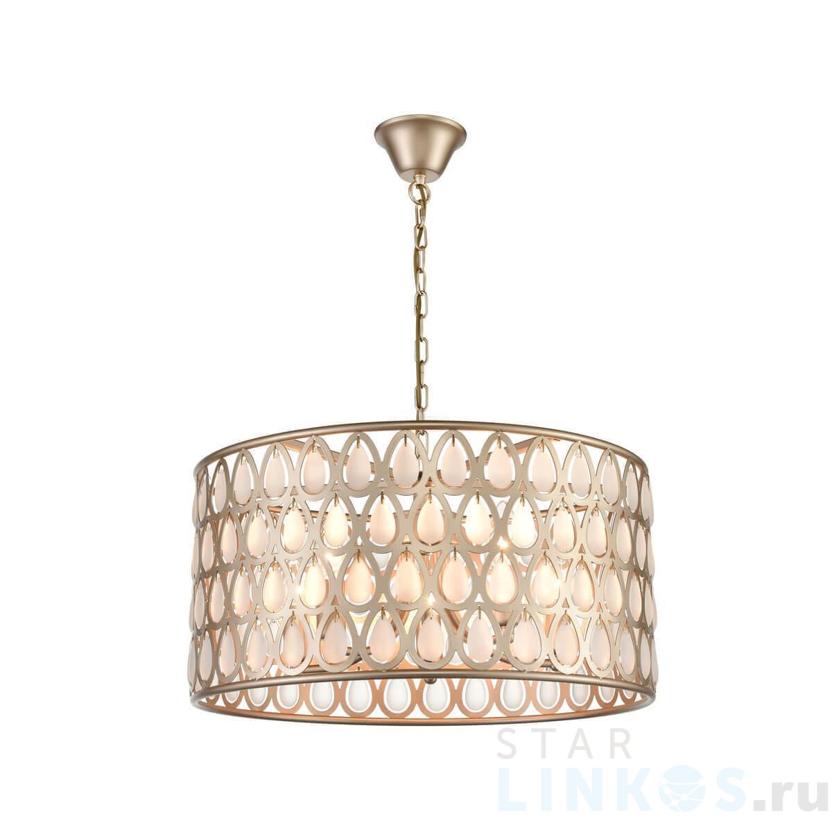 Поставщик рекомендует использовать лампы накаливания с цоколем E14 для освещения площади 8 м2. Подвесная люстра Vele Luce Donna VL4064P05 в используется в интерьере спальни с установкой на потолок.