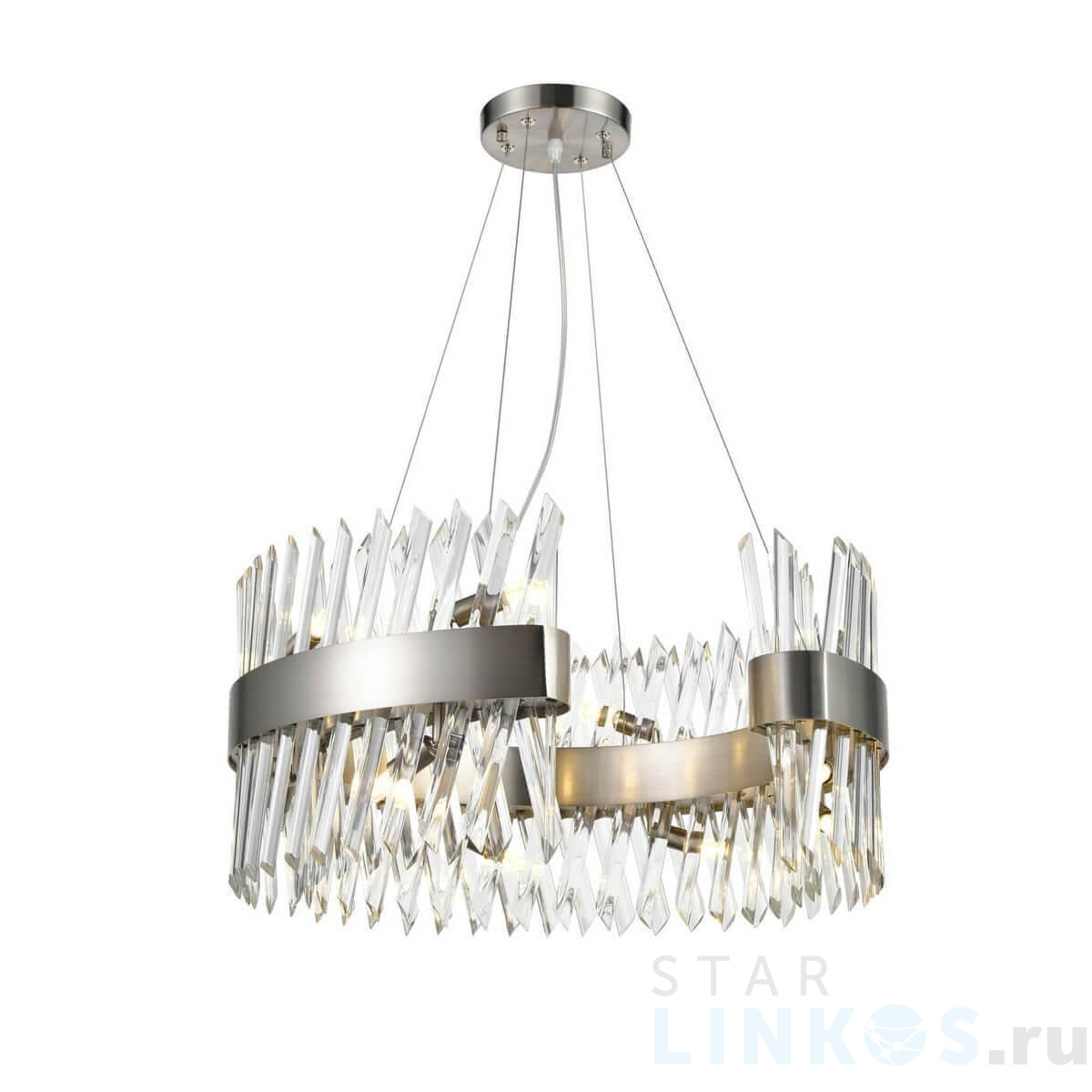 Поставщик рекомендует использовать лампы накаливания с цоколем G9 для освещения площади 18 м2. Подвесная люстра Vele Luce Lion VL3015P14 в используется в интерьере гостиной с установкой на потолок.