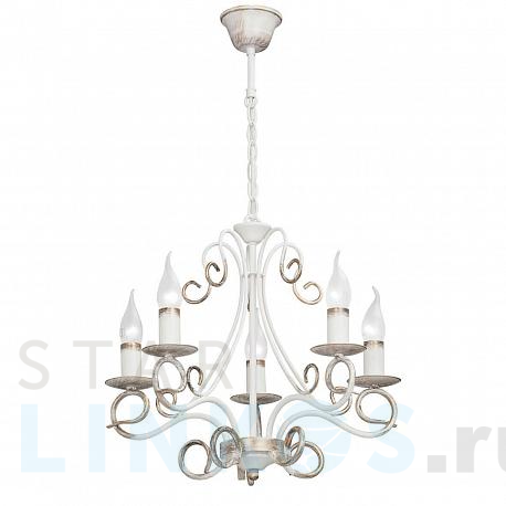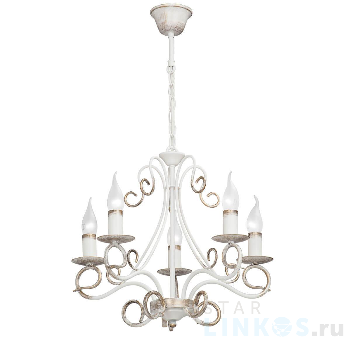 Поставщик рекомендует использовать лампы накаливания с цоколем E14 для освещения площади 11,1 м2. Подвесная люстра Vitaluce V1008/5 в классическом стиле используется в интерьере гостиной с установкой на потолок.