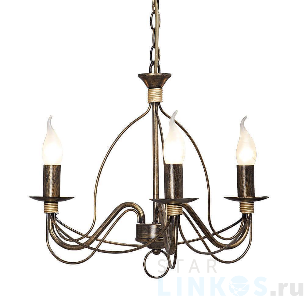 Поставщик рекомендует использовать лампы накаливания с цоколем E14 для освещения площади 6,7 м2. Подвесная люстра Vitaluce V1034/3 в классическом стиле используется в интерьере гостиной с установкой на потолок.
