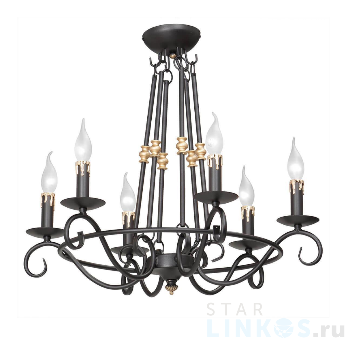Поставщик рекомендует использовать лампы накаливания с цоколем E14 для освещения площади 13,3 м2. Подвесная люстра Vitaluce V1039/6 в используется в интерьере гостиной с установкой на потолок.