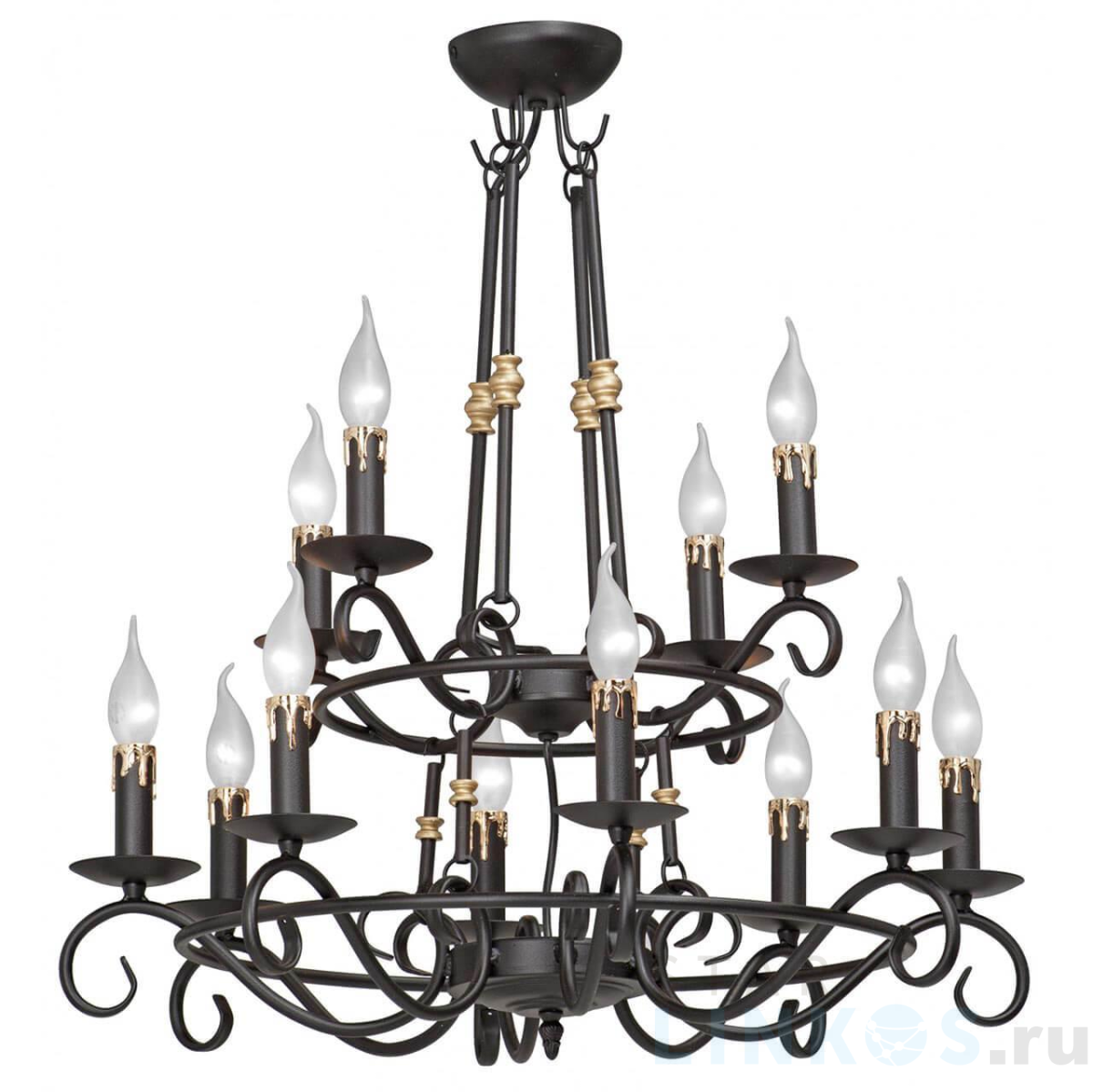 Поставщик рекомендует использовать лампы накаливания с цоколем E14 для освещения площади 26,7 м2. Подвесная люстра VitaLuce V1039/8+4 в используется в интерьере гостиной с установкой на потолок.