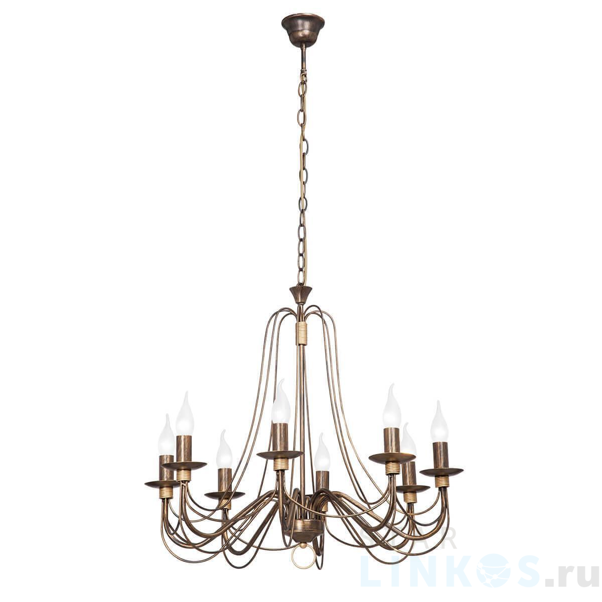 Поставщик рекомендует использовать лампы накаливания с цоколем E14 для освещения площади 17,8 м2. Подвесная люстра Vitaluce V1044/8 в классическом стиле используется в интерьере гостиной с установкой на потолок.