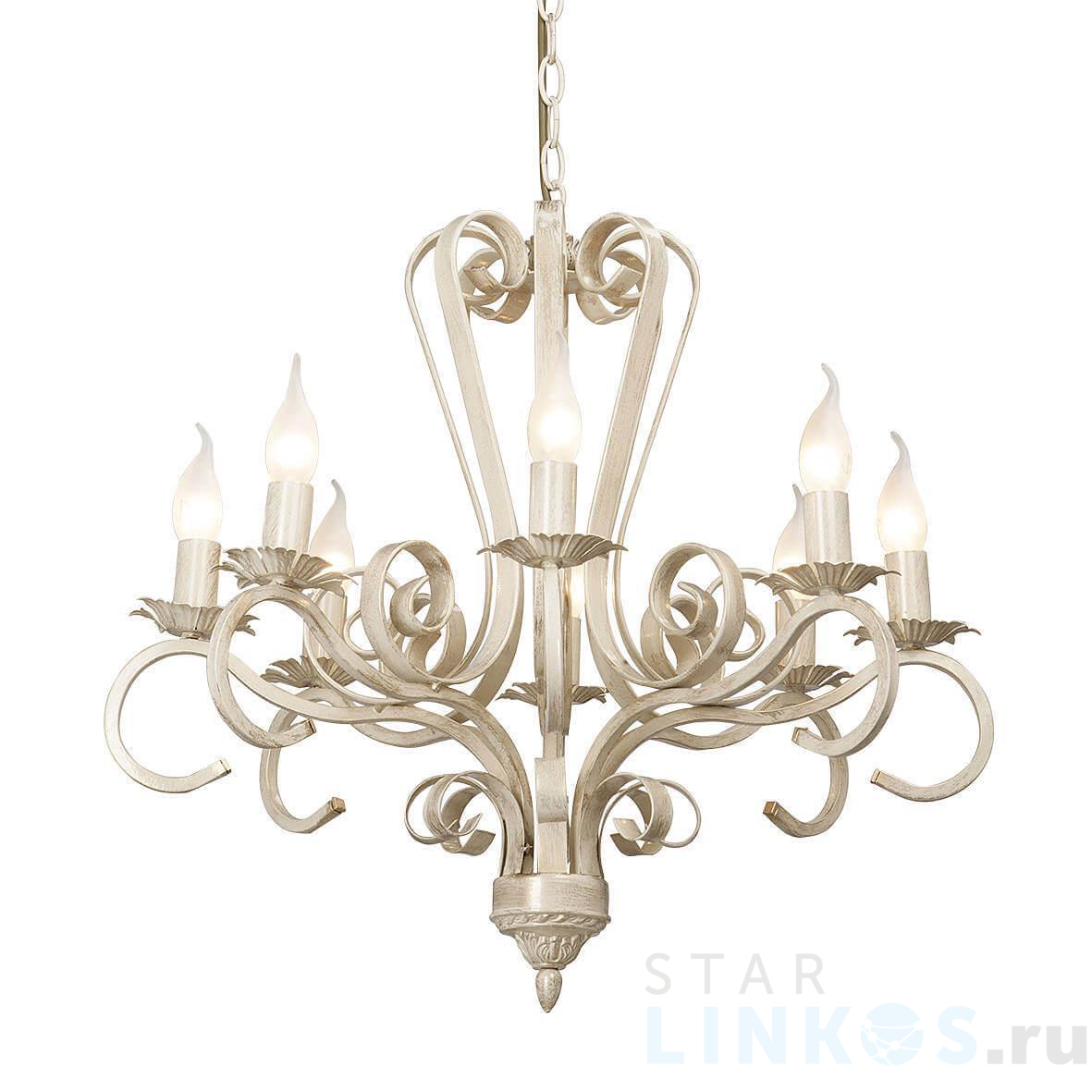 Поставщик рекомендует использовать лампы накаливания с цоколем E14 для освещения площади 17,8 м2. Подвесная люстра Vitaluce V1072/8 в классическом стиле используется в интерьере гостиной с установкой на потолок.