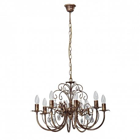 Поставщик рекомендует использовать лампы накаливания с цоколем E14 для освещения площади 17,8 м2. Подвесная люстра Vitaluce V1169/8 в используется в интерьере гостиной с установкой на потолок.