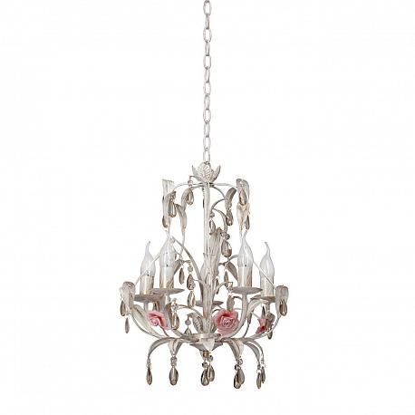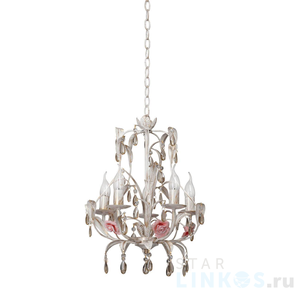 Поставщик рекомендует использовать лампы накаливания с цоколем E14 для освещения площади 11,1 м2. Подвесная люстра Vitaluce V1239/5 в стиле прованс используется в интерьере гостиной с установкой на потолок.