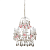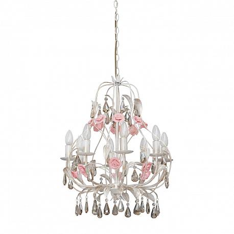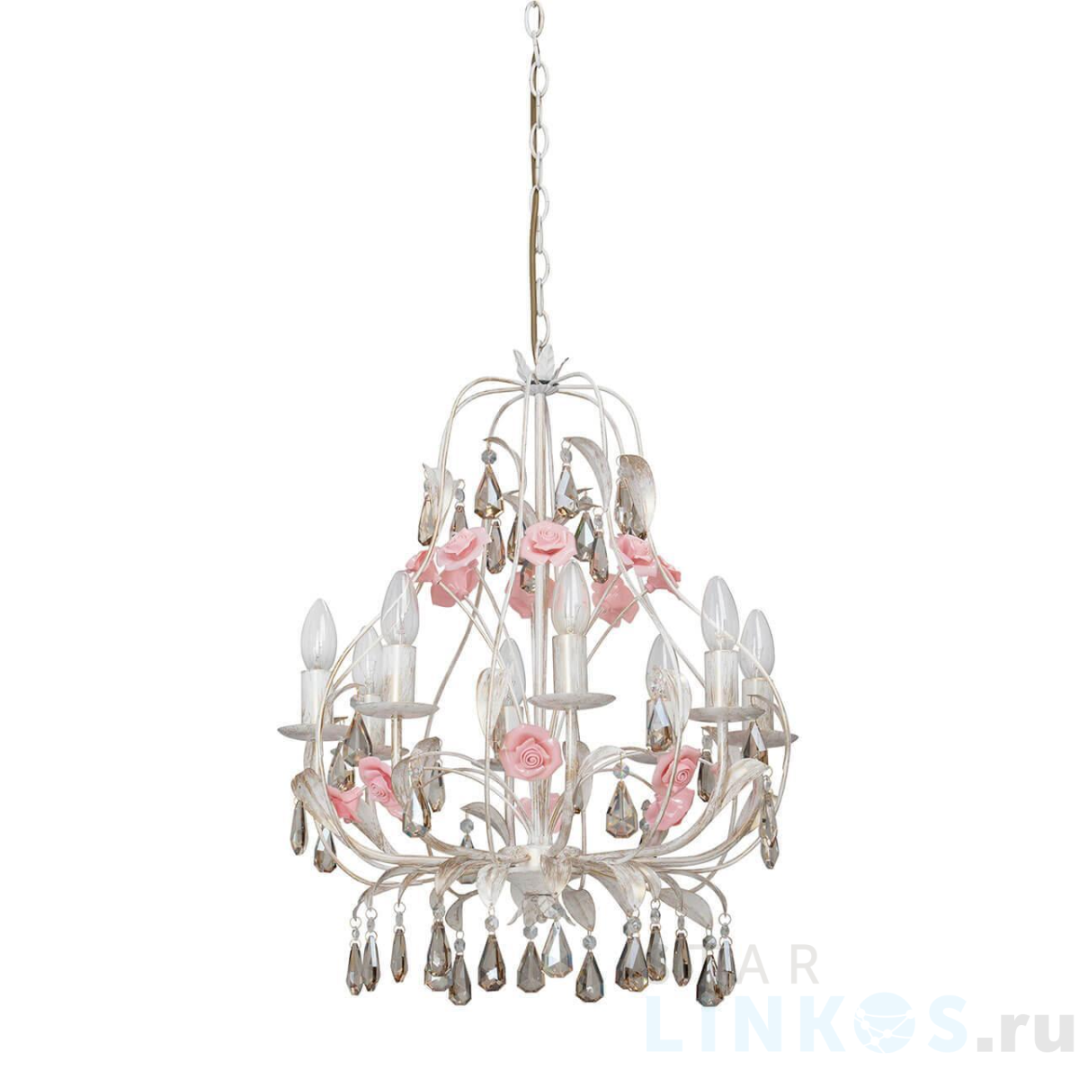Поставщик рекомендует использовать лампы накаливания с цоколем E14 для освещения площади 17,8 м2. Подвесная люстра Vitaluce V1239/8 в стиле прованс используется в интерьере гостиной с установкой на потолок.