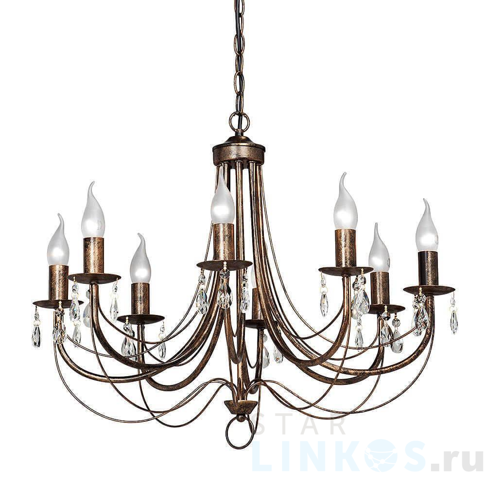 Поставщик рекомендует использовать лампы накаливания с цоколем E14 для освещения площади 17,8 м2. Подвесная люстра Vitaluce V1253/8 в классическом стиле используется в интерьере гостиной с установкой на потолок.