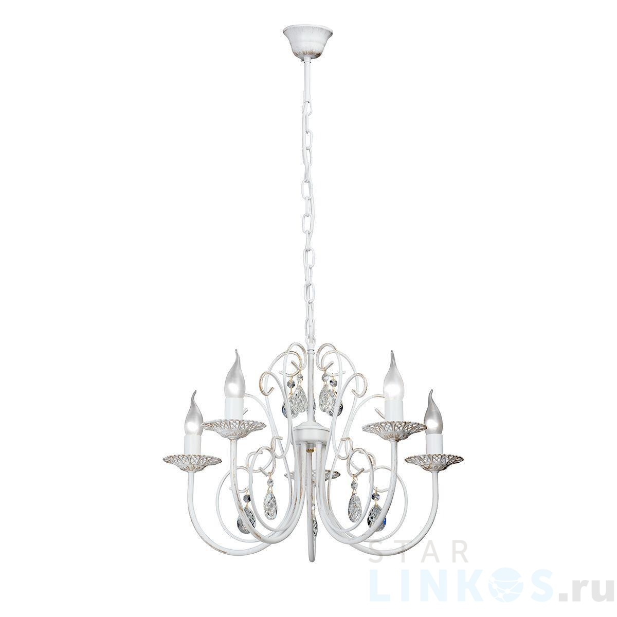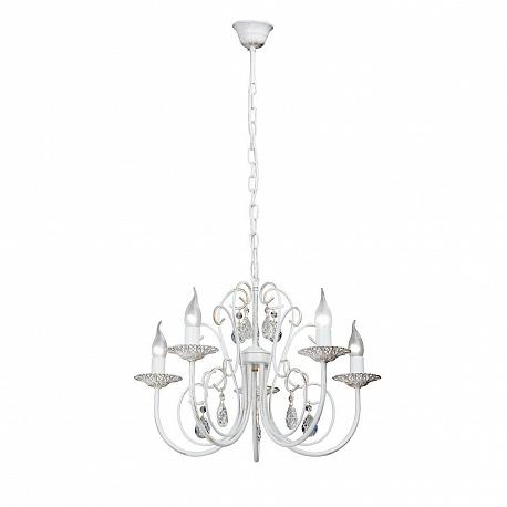 Поставщик рекомендует использовать лампы накаливания с цоколем E14 для освещения площади 15 м2. Подвесная люстра Vitaluce V1398/5 в классическом стиле используется в интерьере спальни с установкой на потолок.