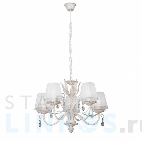 Поставщик рекомендует использовать лампы накаливания с цоколем E14 для освещения площади 10 м2. Подвесная люстра Vitaluce V1471-0/5 в используется в интерьере гостиной с установкой на потолок.