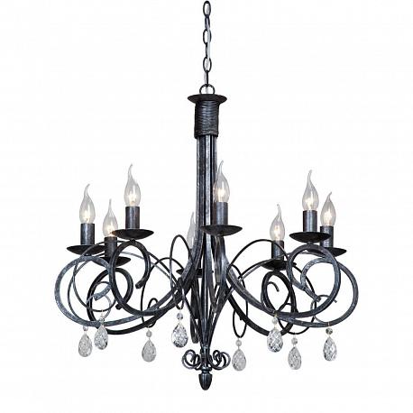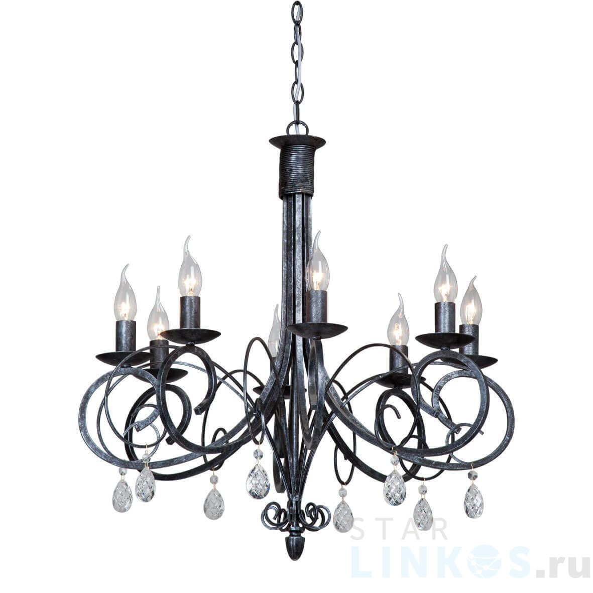 Поставщик рекомендует использовать лампы накаливания с цоколем E14 для освещения площади 17,8 м2. Подвесная люстра Vitaluce V1480/8 в кантри-стиле используется в интерьере гостиной с установкой на потолок.