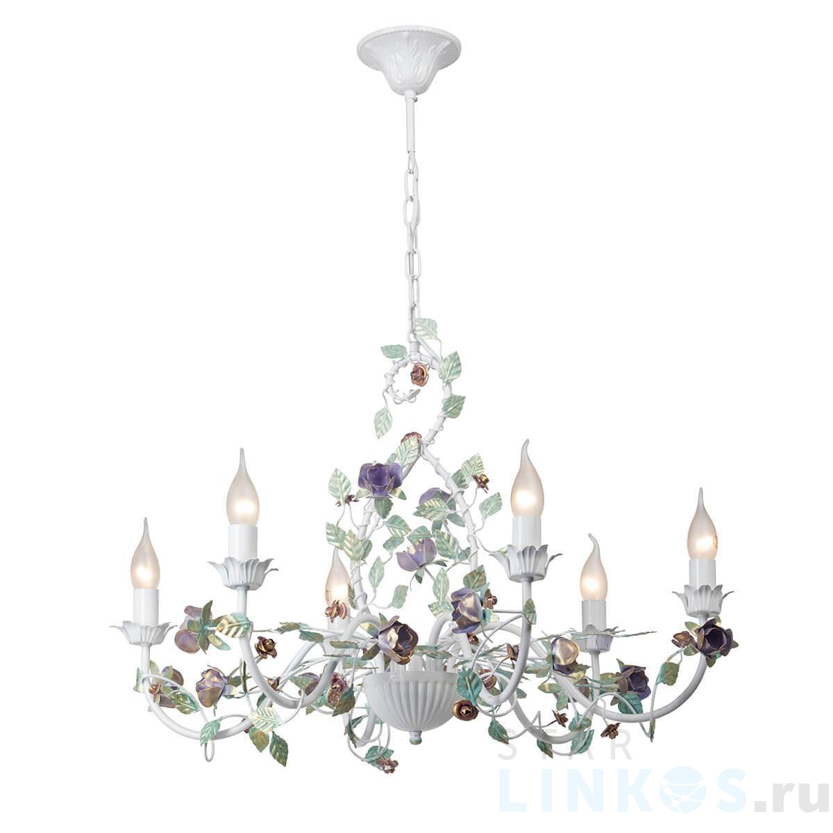 Поставщик рекомендует использовать лампы накаливания с цоколем E14 для освещения площади 12 м2. Подвесная люстра Vitaluce V1830-0/6 в стиле прованс используется в интерьере гостиной с установкой на потолок.