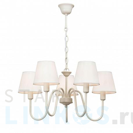 Поставщик рекомендует использовать лампы накаливания с цоколем E14 для освещения площади 11,1 м2. Подвесная люстра Vitaluce V3339/5 в классическом стиле используется в интерьере гостиной с установкой на потолок.