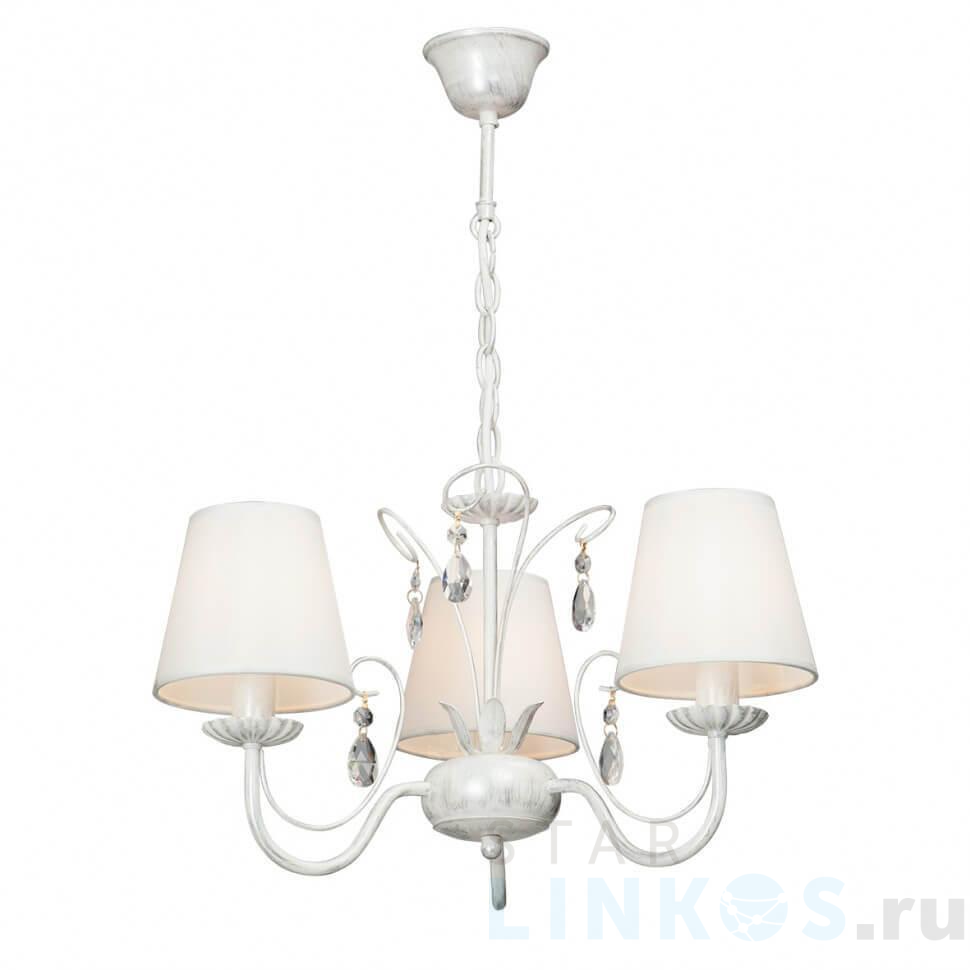 Поставщик рекомендует использовать лампы накаливания с цоколем E14 для освещения площади 6,7 м2. Подвесная люстра Vitaluce V3354/3 в классическом стиле используется в интерьере гостиной с установкой на потолок.