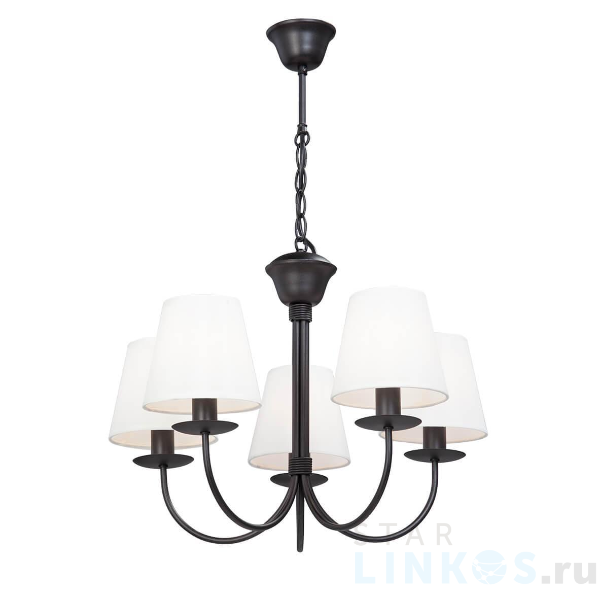 Поставщик рекомендует использовать лампы накаливания с цоколем E14 для освещения площади 16,7 м2. Подвесная люстра Vitaluce V3398-1/5 в используется в интерьере гостиной с установкой на потолок.