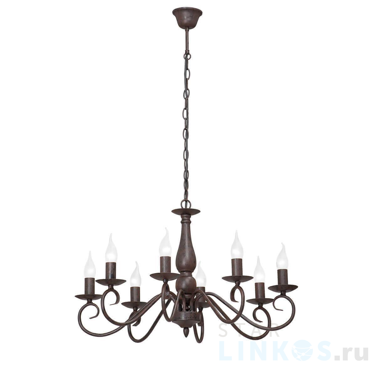 Поставщик рекомендует использовать лампы накаливания с цоколем E14 для освещения площади 17,8 м2. Подвесная люстра Vitaluce V3464/8 в классическом стиле используется в интерьере гостиной с установкой на потолок.