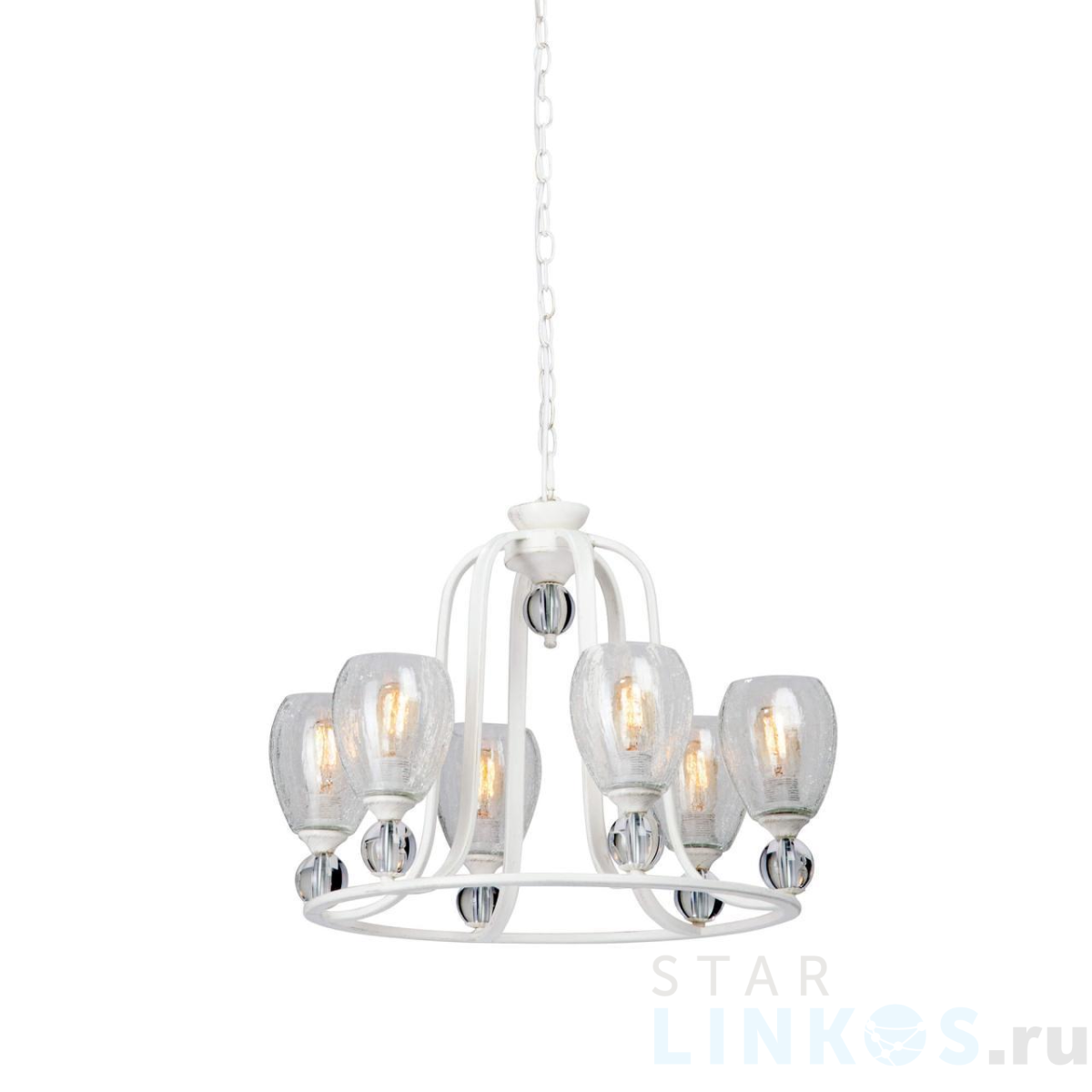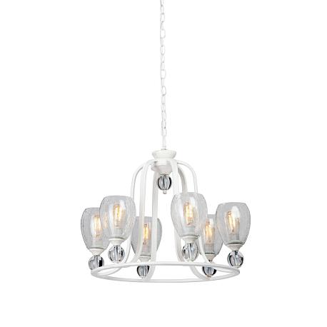 Поставщик рекомендует использовать лампы накаливания с цоколем E27 для освещения площади 18 м2. Подвесная люстра Vitaluce V3757-0/6 в используется в интерьере гостиной с установкой на потолок.
