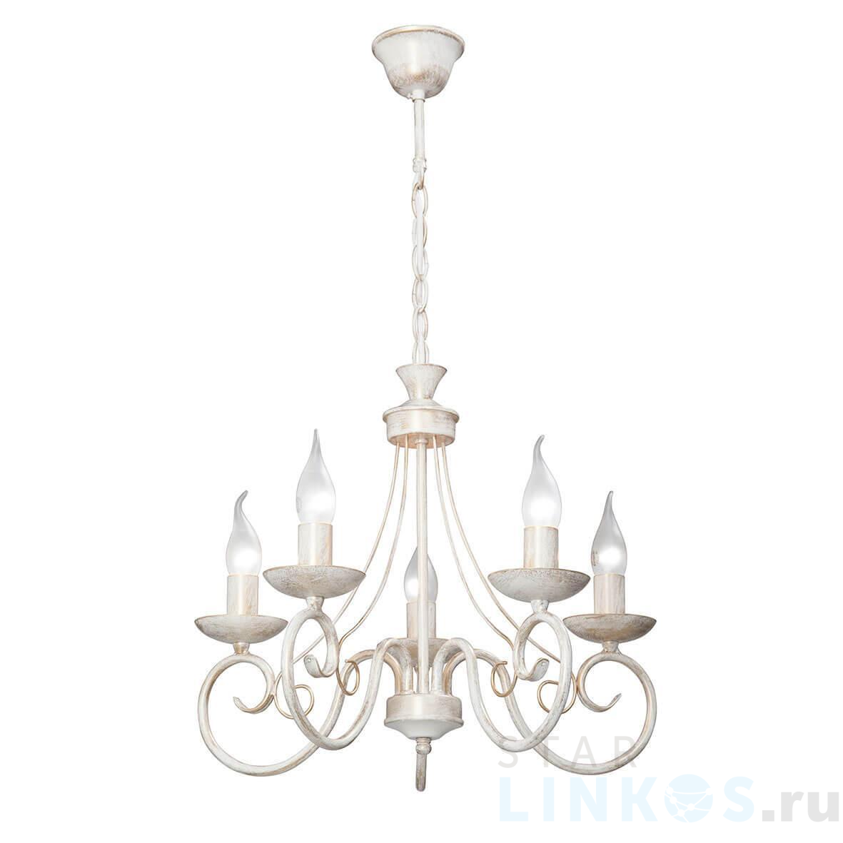 Поставщик рекомендует использовать лампы накаливания с цоколем E14 для освещения площади 11,1 м2. Подвесная люстра Vitaluce V3807-0/5 в классическом стиле используется в интерьере гостиной с установкой на потолок.