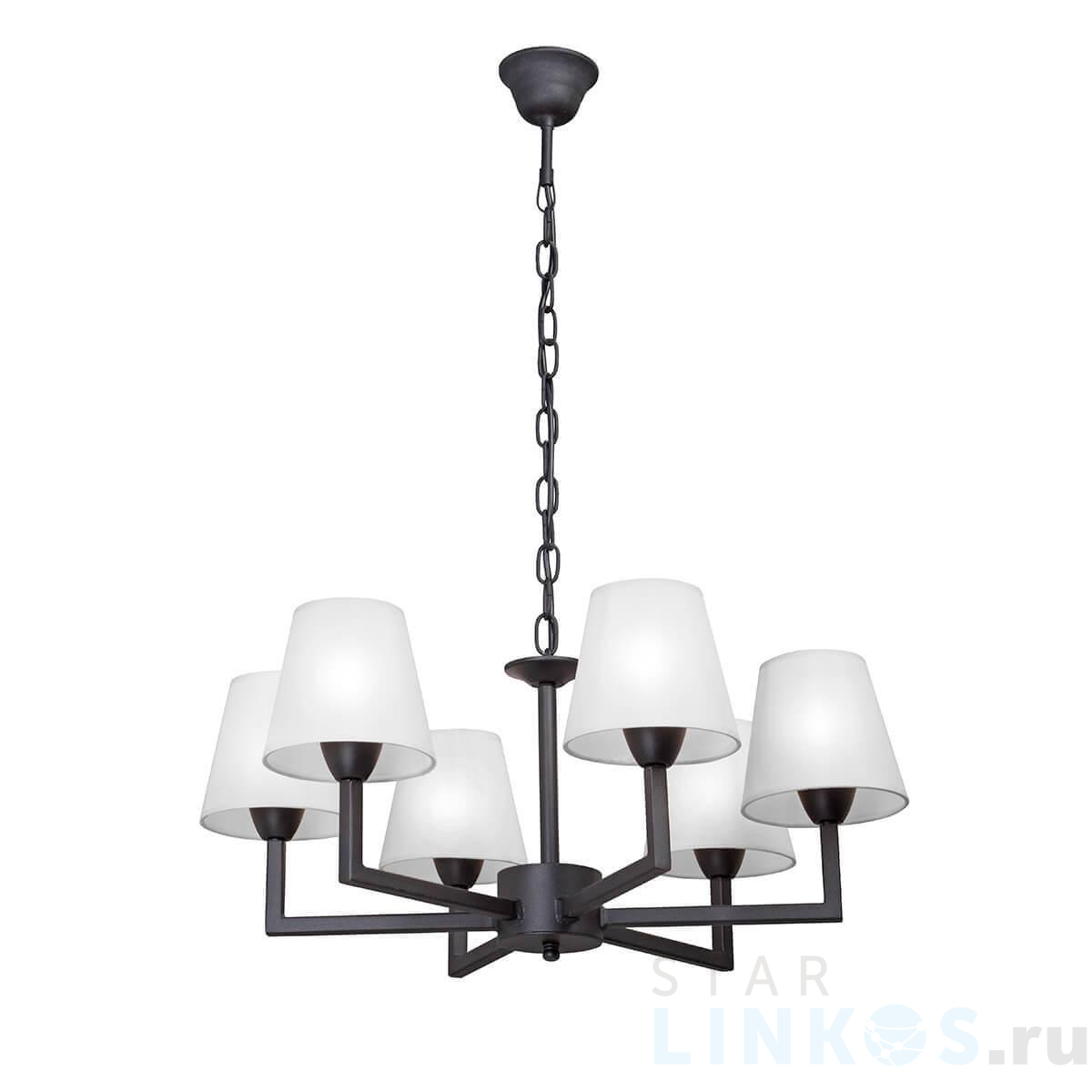 Поставщик рекомендует использовать лампы накаливания с цоколем E14 для освещения площади 13,3 м2. Подвесная люстра Vitaluce V3939-1/6 в стиле арт-деко используется в интерьере гостиной с установкой на потолок.
