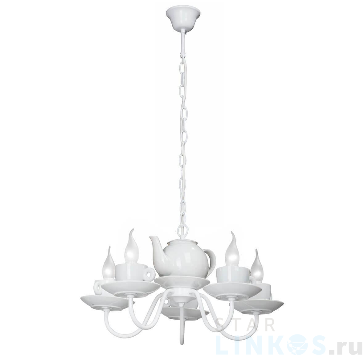 Поставщик рекомендует использовать лампы накаливания с цоколем E14 для освещения площади 11,1 м2. Подвесная люстра Vitaluce V4130/5 в кантри-стиле используется в интерьере гостиной с установкой на потолок.
