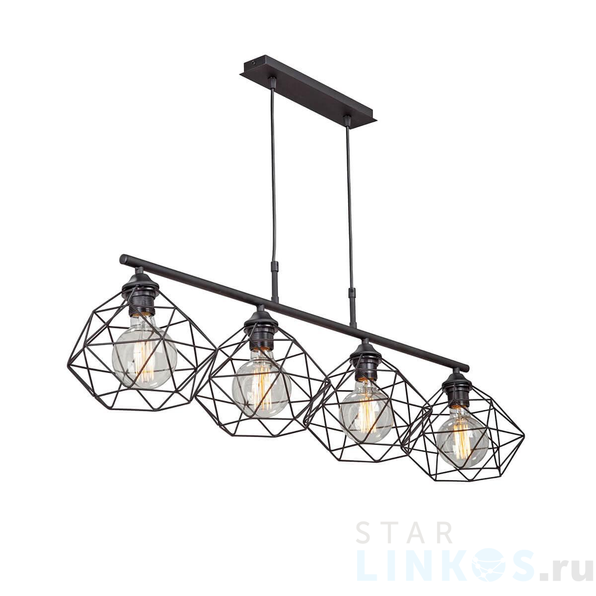 Поставщик рекомендует использовать лампы накаливания с цоколем E27 для освещения площади 8,9 м2. Подвесная люстра Vitaluce V4269-1/4S в стиле лофт используется в интерьере гостиной с установкой на потолок.
