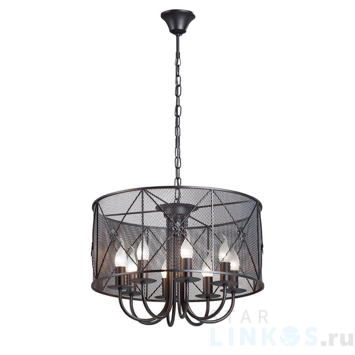Поставщик рекомендует использовать лампы накаливания с цоколем E14 для освещения площади 17,8 м2. Подвесная люстра Vitaluce V4280-1/8 в стиле лофт используется в интерьере гостиной с установкой на потолок.