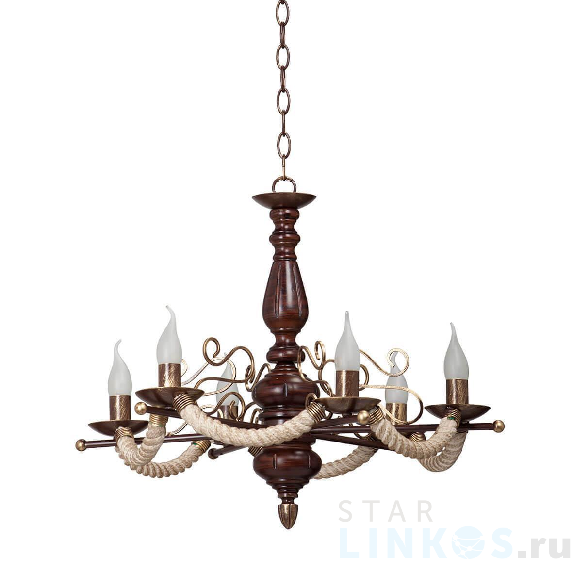 Поставщик рекомендует использовать лампы накаливания с цоколем E14 для освещения площади 13,3 м2. Подвесная люстра Vitaluce V4305/6 в кантри-стиле используется в интерьере гостиной с установкой на потолок.