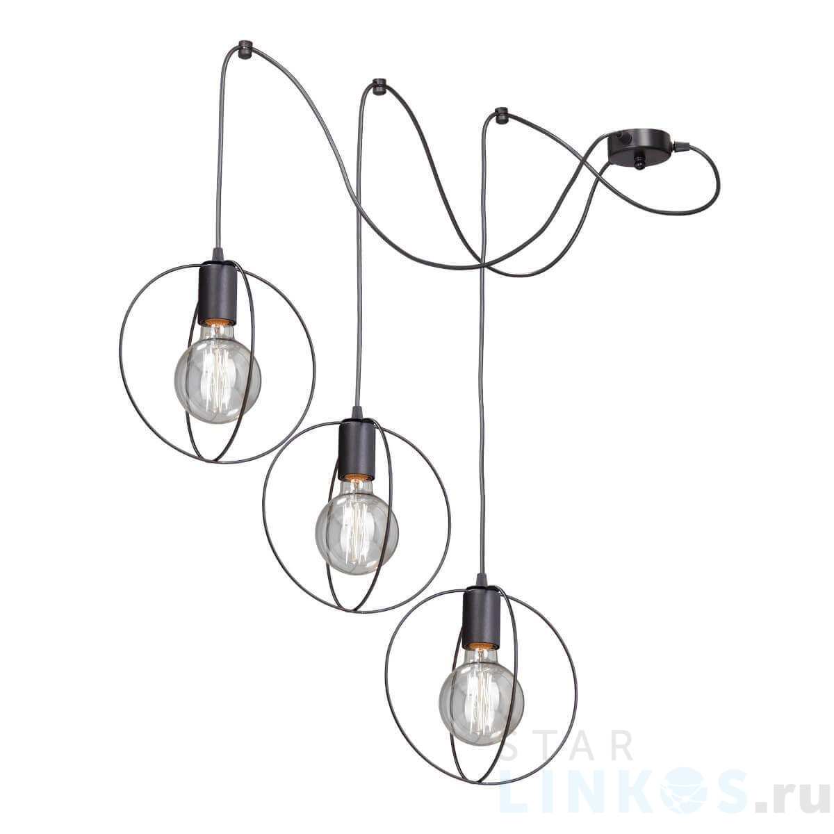 Поставщик рекомендует использовать лампы накаливания с цоколем E27 для освещения площади 10 м2. Подвесная люстра Vitaluce V4328/3PL в стиле лофт используется в интерьере гостиной с установкой на потолок.