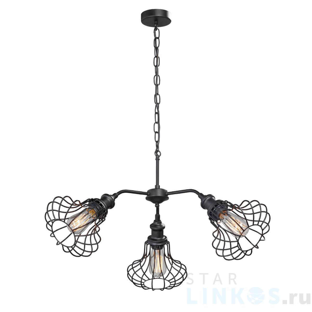 Поставщик рекомендует использовать лампы накаливания с цоколем E27 для освещения площади 9 м2. Подвесная люстра Vitaluce V4499-1/3 в стиле лофт используется в интерьере гостиной с установкой на потолок.