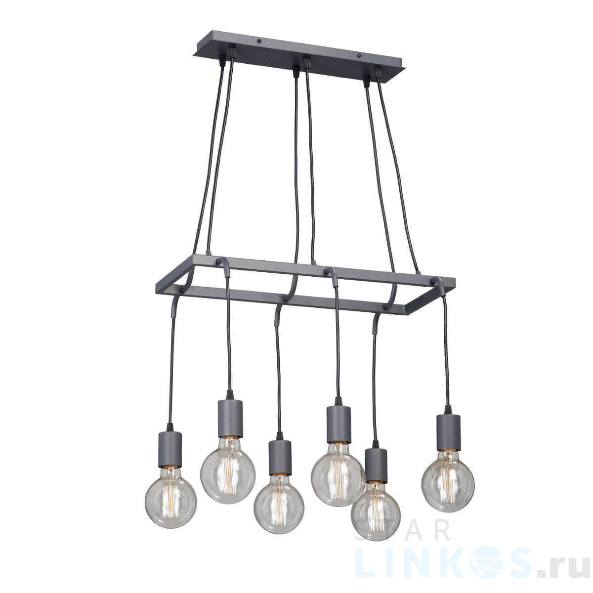 Поставщик рекомендует использовать лампы накаливания с цоколем E27 для освещения площади 20 м2. Подвесная люстра Vitaluce V4526-2/6S в стиле лофт используется в интерьере гостиной с установкой на потолок.