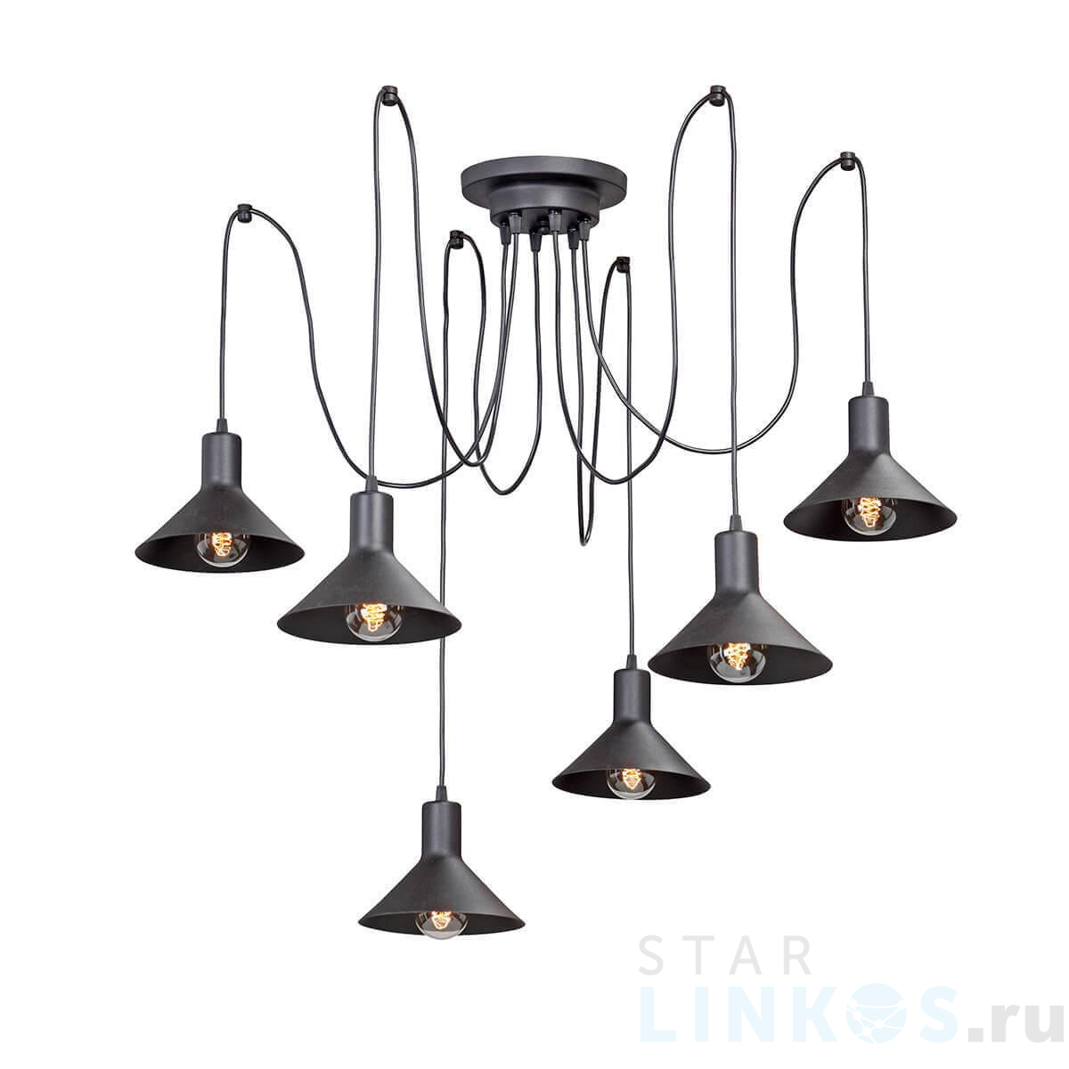 Поставщик рекомендует использовать лампы накаливания с цоколем E27 для освещения площади 12 м2. Подвесная люстра Vitaluce V4786-1/6S в стиле лофт используется в интерьере гостиной с установкой на потолок.