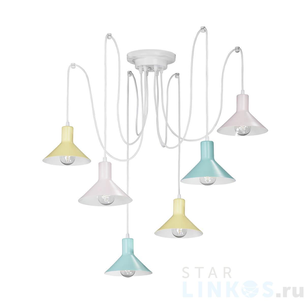 Поставщик рекомендует использовать лампы накаливания с цоколем E27 для освещения площади 12 м2. Подвесная люстра Vitaluce V4794-0/6S в стиле лофт используется в интерьере гостиной с установкой на потолок.